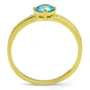 Backordered: Requires 4-7 day shipping lead timeCategory: RingMaterial: Stainless SteelFinish: IP Gold(Ion Plating)Center Stone Type: SyntheticCenter Stone Name: Synthetic StoneCenter Stone Color: Sea BlueWeight (approx):...