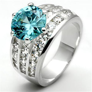 Backordered: Requires 4-7 day shipping lead timeCategory: RingMaterial: 925 Sterling SilverFinish: RhodiumCenter Stone Type: CubicCenter Stone Name: Center Stone Color: Sea BlueWeight (approx): 2.20 (g)