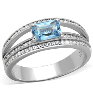 Backordered: Requires 4-7 day shipping lead timeCategory: RingMaterial: 925 Sterling SilverFinish: RhodiumCenter Stone Type: SyntheticCenter Stone Name: Synthetic GlassCenter Stone Color: Sea BlueWeight (approx): 5.32...