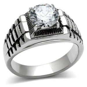 Category: RingMaterial: Stainless SteelFinish: High polished (no plating)Center Stone Type: AAA Grade CZCenter Stone Color: ClearCenter Stone Cut: RoundWeight (approx): 11.1 (g)