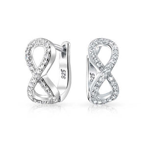 Say forever with these gorgeous silver infinity huggie earrings. Made of .925 sterling silver, these silver earrings feature a figure 8 or infinity symbol encrusted...
