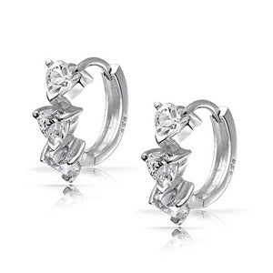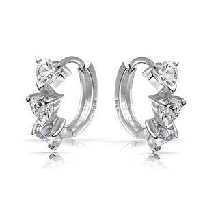 You will fall in love with our cubic zirconia falling heart sterling silver huggie earrings. Each hoop of these .925 sterling silver huggie hoops feature...