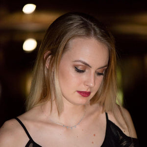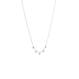 Charming necklace in 16" with 2" extension. Rhodium plated sterling silver with 5 tiny 2.7mm squares each holding one 1.6mm CZ on 1.1mm cable chain....